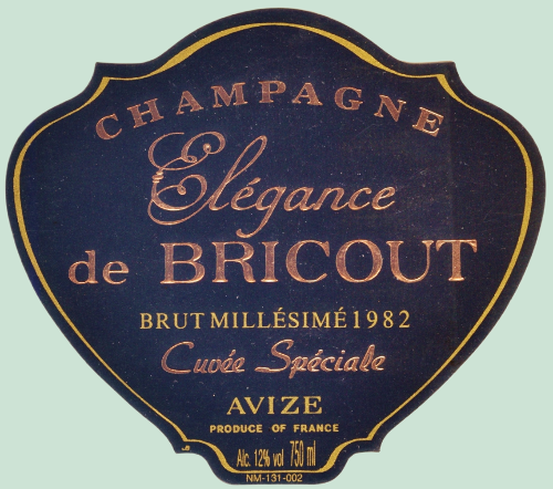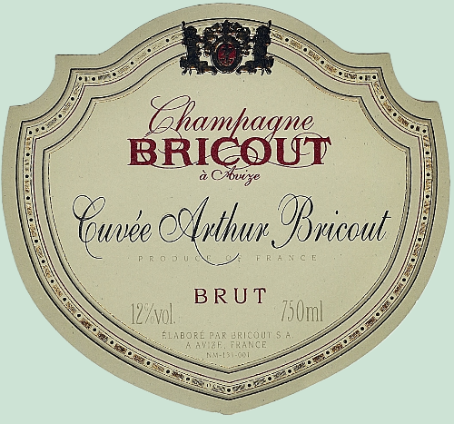 The label says a House Bricout founded in 1876. (1876 is the date of filing the trademark Arthur Bricout, based in Epernay as a trader, he probably sold champagne Bricout between 1870 and 1876 date of his bankruptcy. It will take until 1966 that one of his descendants settles in Avize and creates the champagne house Arthur Bricout) The label indicates that this champagne is produced Tours-sur-Marne near Epernay, manufactured at the same location as the Champagne Lafitte (Vranken group). This new cuvee is a priori totally unrelated to the champagne Bricout previously developed in Avize and Tours-sur-Marne until 2003, except for the name of the brand.