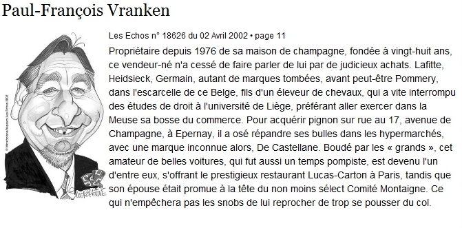 Paul-François Vranken au Tribunal Correctionnel de Reims le 24 août 2004 : La société Vranken-Pommery s’était en effet porté acquéreur, en association avec Moët et Chandon, des champagnes Bricout et Delbeck après la liquidation. La Tribune 12 juillet 2004: Paul-François